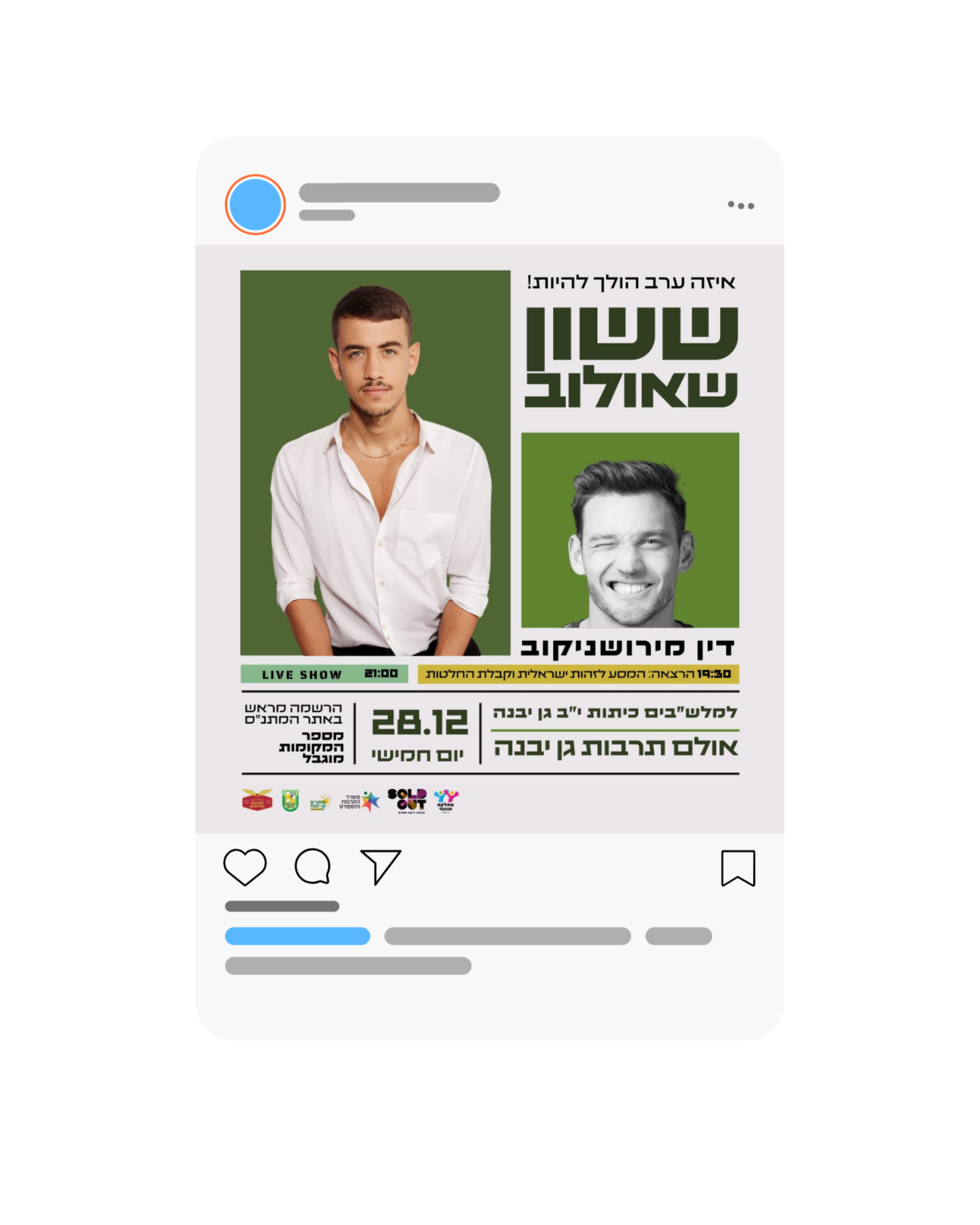 מיתוג, קריאייטיב ותוכן שמחוברים למהות שלך. אנחנו מפתחים שפת מותג, קונספט ויזואלי וטון דיבור מדויק שיוצרים נוכחות ברורה, מבודלת, ובעלת ערך, כזו שמספרת סיפור ויוצרת חיבור אמיתי עם הקהל שלך.